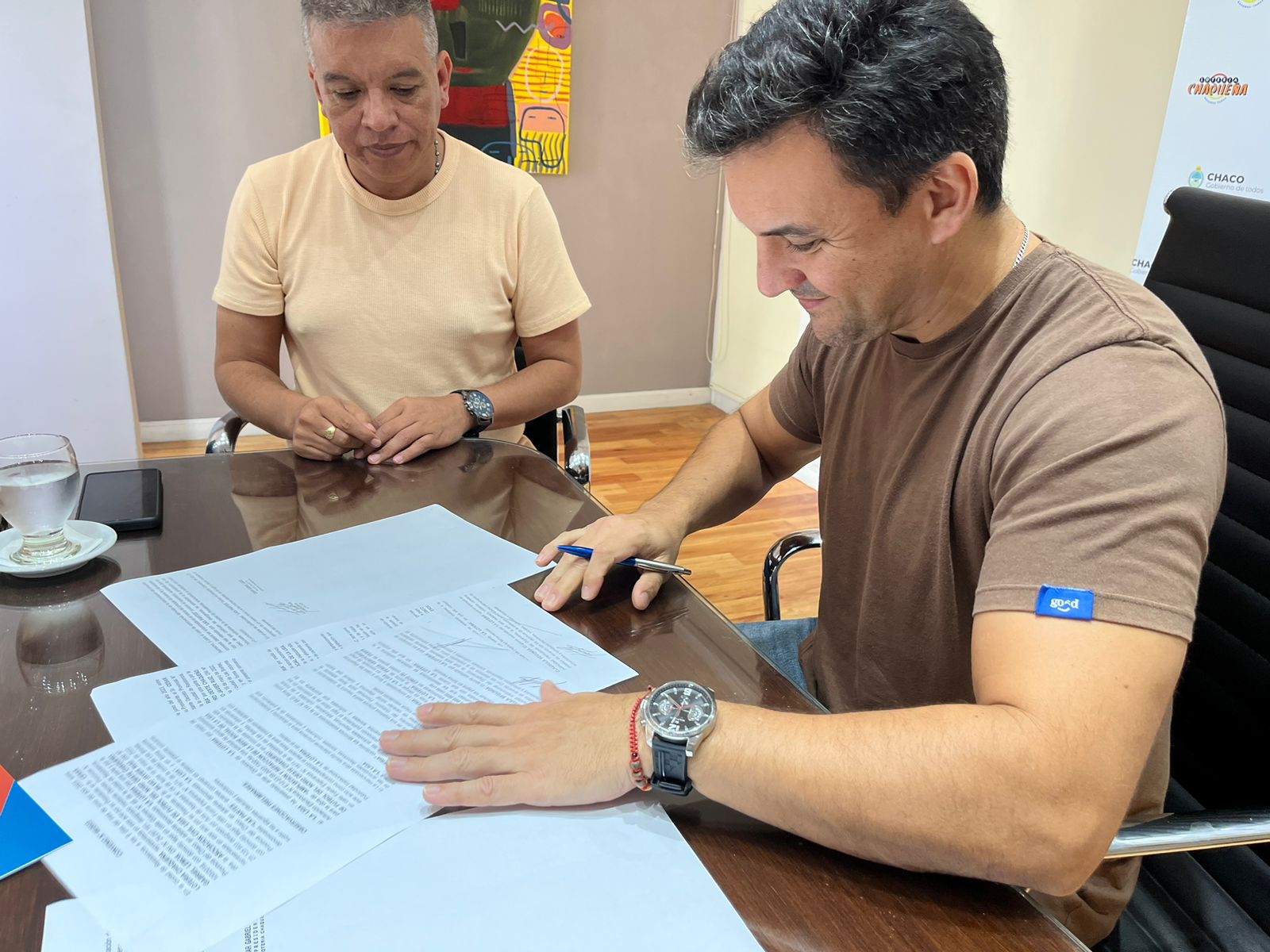 El presidente de Lotería Chaqueña Gabriel Lemos firmó sendos convenios para concretar obras de infraestructura en la Liga de Fútbol del Noroeste y la Asociación Civil de Maxi Básquet (AMBALAB) de Las Breñas.