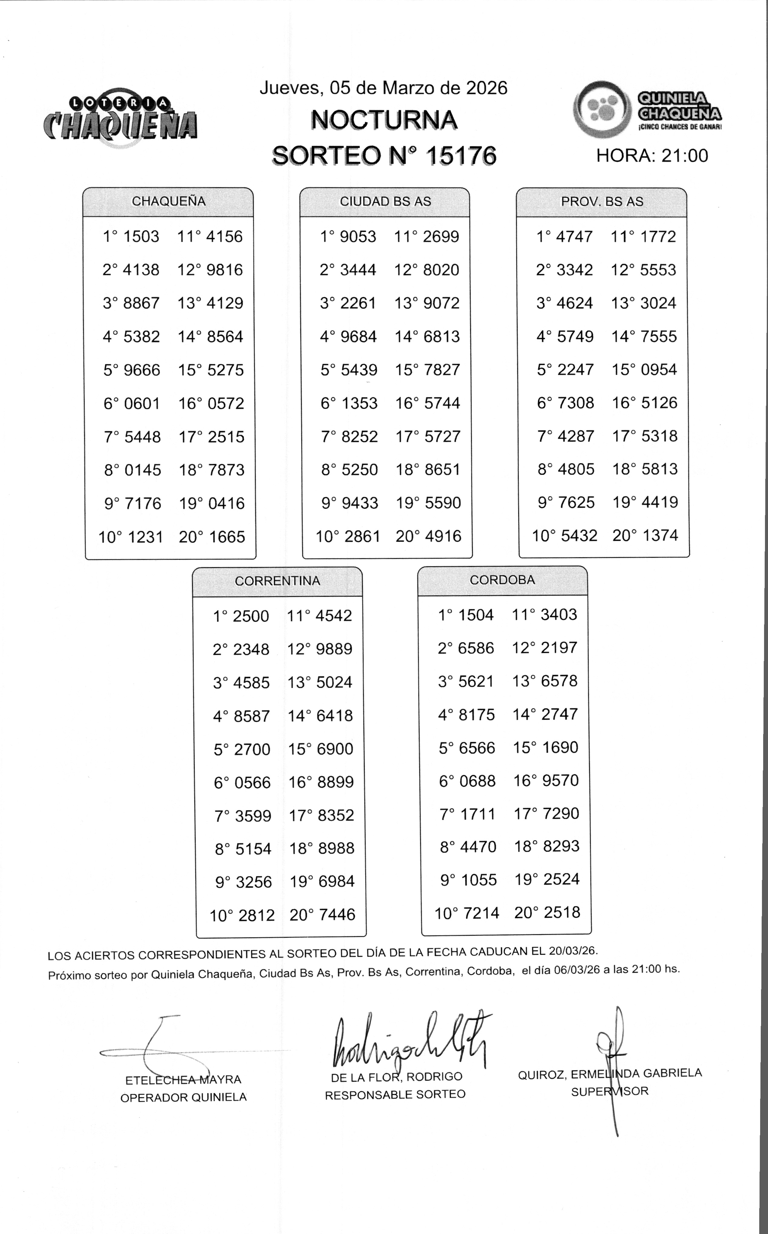 Nro de Sorteo: 15176