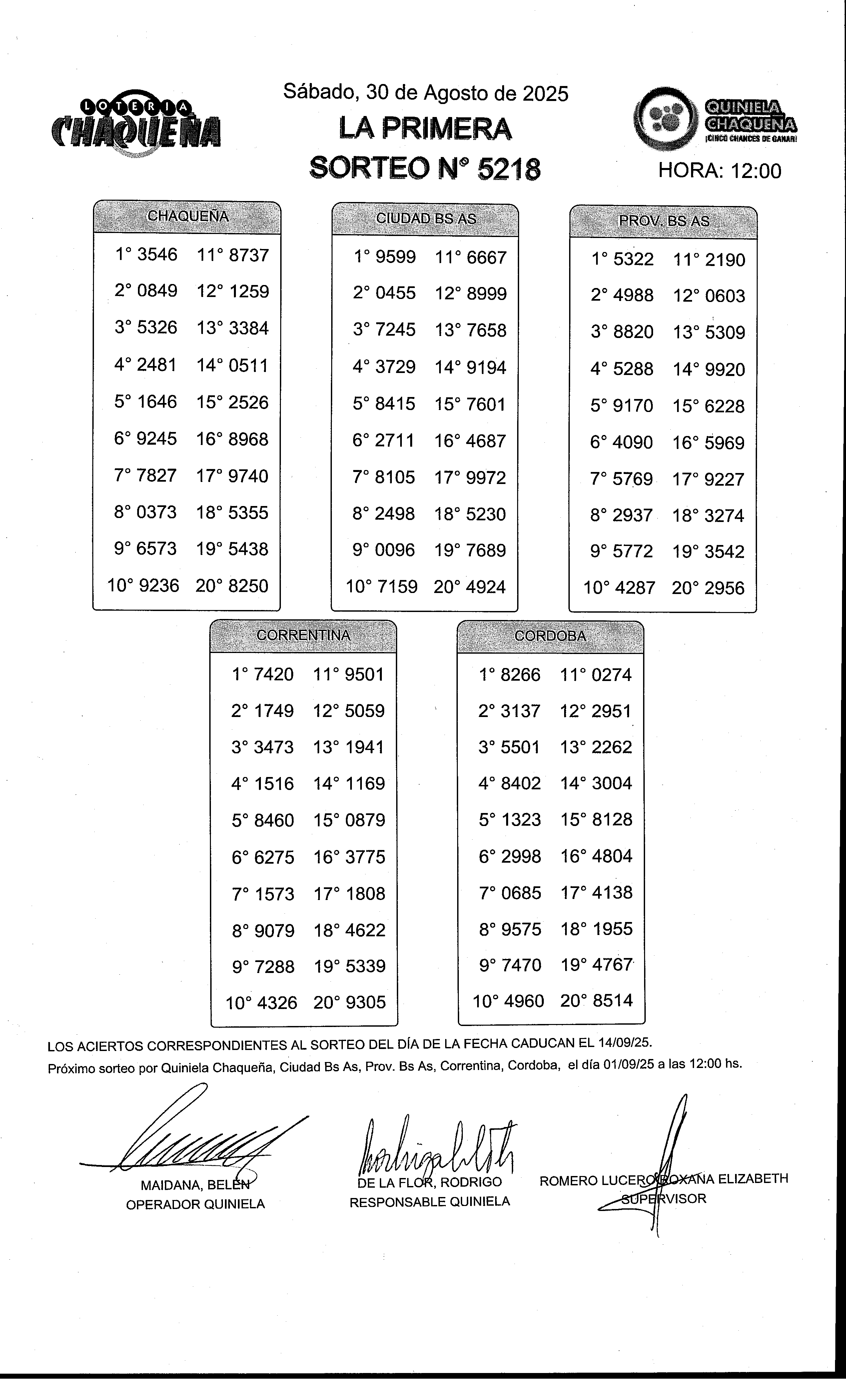 - N° de Sorteo: 5218